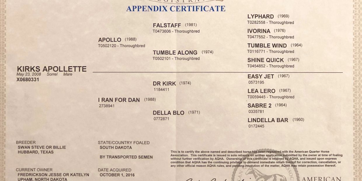 Kirks Apollette's 2017 gelding by Eddie Stinson! This girl can PRODUCE! Owned by Jesse & Katelyn Fredrickson.